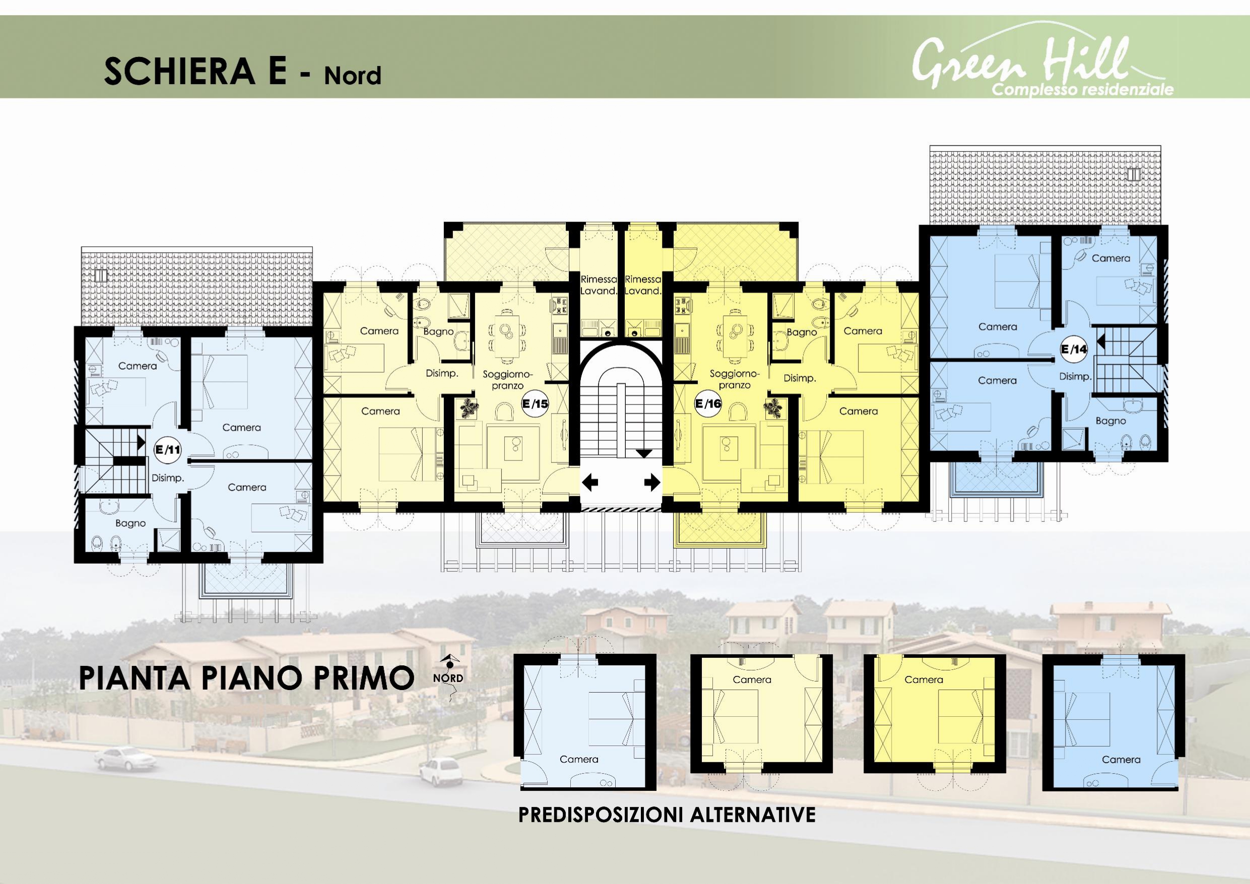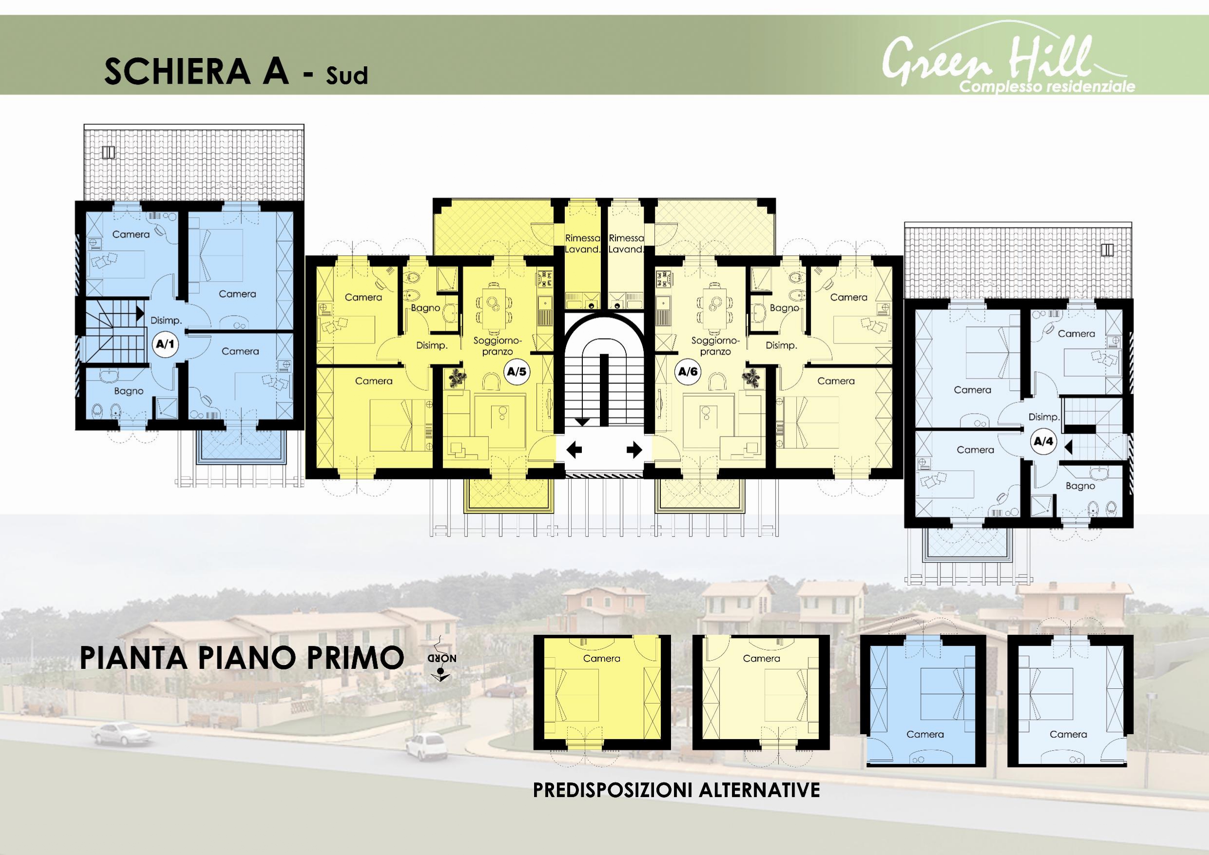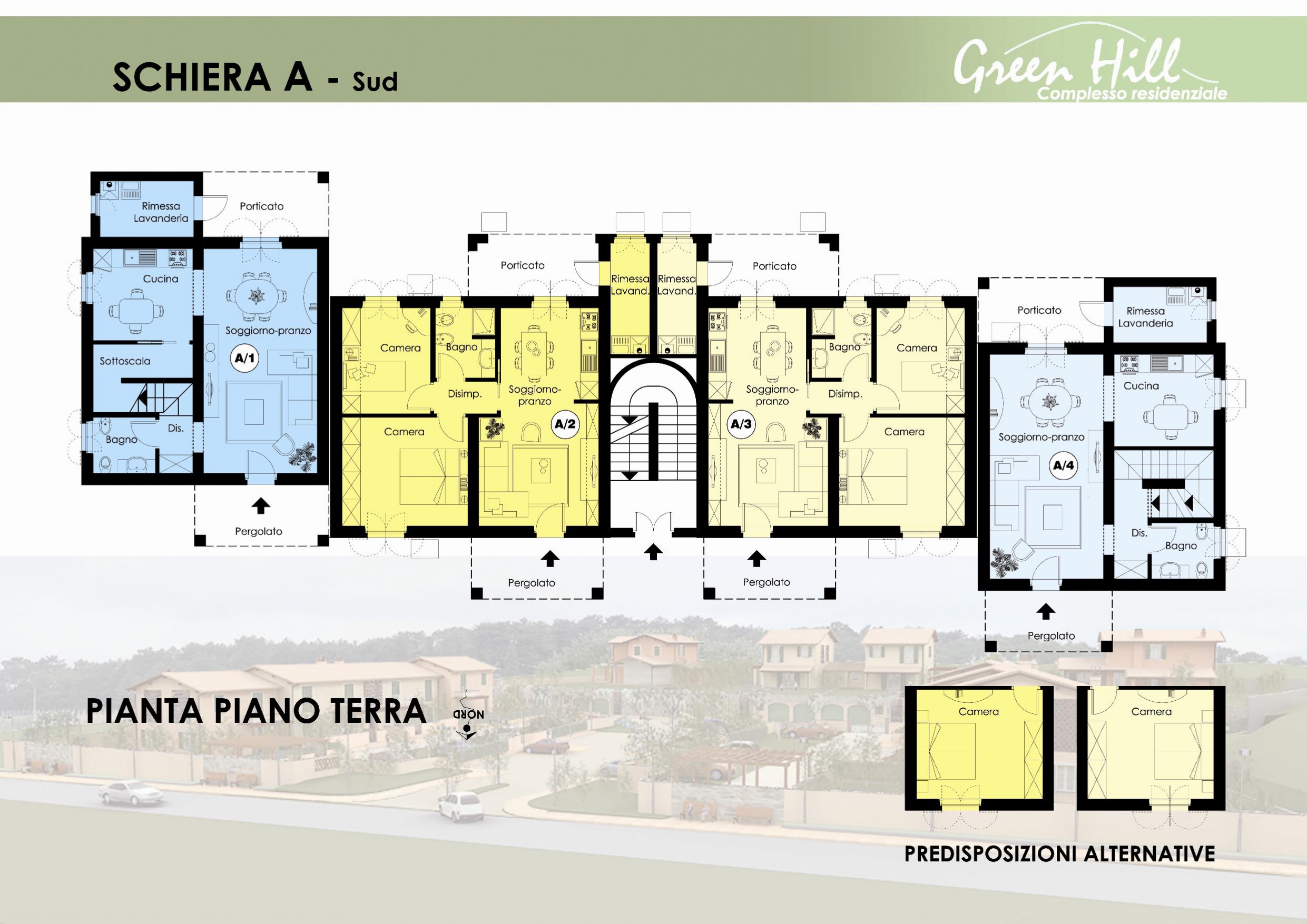 Finiture : Portoncini d’ingresso blindati, gres porcellanato nella zona giorno e parquet nella zona notte, ceramica nei bagni, aria condizionata a mezzo split, termosingoli, infissi in legno, impianto di allarme, videocitofono ed antenna tv.